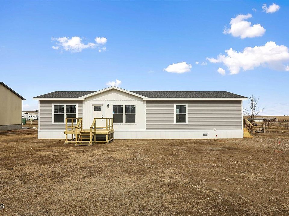 Welcome to your dream modern farmhouse! This brand-new 3-bedroom, 2-bathroom manufactured home is situated on a spacious 1-acre lot just minutes from town. With its clean white walls, white wood cabinetry, and striking black island, the kitchen serves as the heart of the home. The open, airy layout is flooded with natural light, creating a warm and inviting guests in the formal living room or separate dining room or unwind in the spacious primary suite, complete with a dual vanity, walk-in shower, and a generous walk-in closet. Two additional guest bedrooms share a large, beautifully appointed full bathroom. Convenience is key with a separate pantry and a dedicated laundry your morning coffee on the front deck while taking in the peaceful country surroundings. Plus, there's plenty of room to build the garage of your dreams! Don't miss out on this modern farmhouse oasis--schedule a tour today!