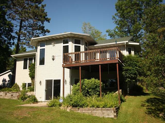 Just minutes from Rhinelander, this 3-4 bedroom, 2.5 bath home on Lake Julia offers city conveniences while retaining the relaxing appeal of lakefront living. This split-level home opens to an impressive great room featuring a vaulted ceiling, Heat-&-Glo gas fireplace, & westerly views of Lake Julia. The adjoining kitchen & dining area offers quality Cambria countertops, attractive maple cabinetry, & stainless appliances, as well as sliding door access to the lake-facing deck. A half bath, main level laundry, & a generous master bedroom suite complete the main level, while 2-3 bedrooms, a full bath, family room w/ lower level walkout, & workshop/storage space comprise the lower level. Exterior features include professional grade landscaping, paved driveway, attached 2-car garage, storage shed, & low maintenance vinyl siding. Panoramic views through Kolby & Kolby windows showcase fully recreational Lake Julia, offering boating, skiing, kayaking & fishing opportunities. Look today!