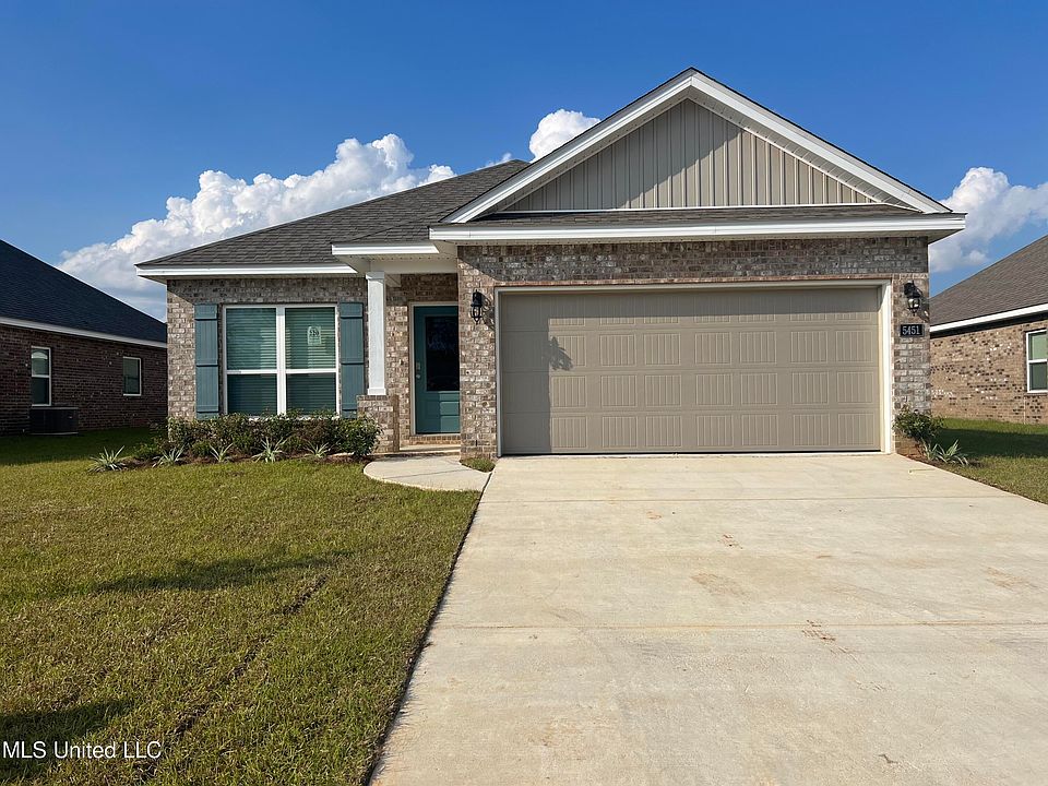 Brand New 4 sided brick home with a nice backyard in D'Iberville!. Why buy used when you can buy new and receive endless warranties and a fully equipped Smart Home? This Oakley plan consists of 3 bedrooms, 2 full bathrooms, extra study/office a large living area, open concept kitchen, soft-close cabinets and drawers, cathedral type ceilings, granite throughout, large Primary bedroom, walk-in closet, shower & double vanity in en-suite. This home is in walking distance to Schools and only 7 minutes to The Promenade shopping center. Photos are of a previous build. Colors & options may vary.