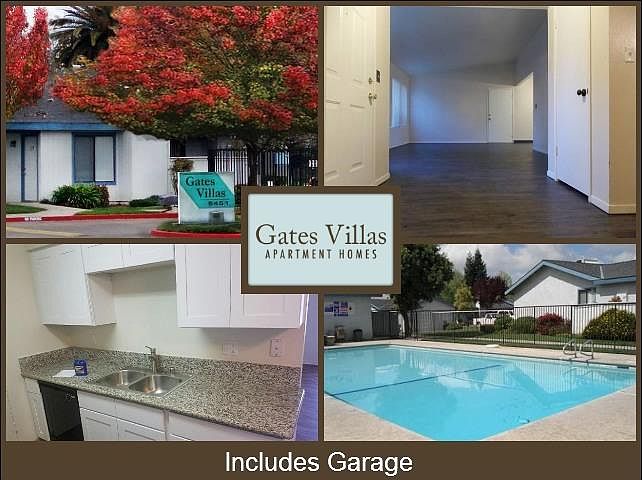 ~WELCOME TO GATES VILLAS~ Gates Villas Is A Beautiful 5 Acre Gated Community In North West Fresno, North Of Shaw Avenue. We have a mixture of 2 and 3 Bedroom Single Level Attached Homes With Large Backyards and Two Story Apartment Homes With Nice Balconies And Small Yards. All Have Garages Included. Our Single Level Homes And Apartment Homes Are Located On A Large Gated Cul-De-Sac With A Park Like Setting That Includes Large Shade Trees, Grass To Play On, And A Large Sparkling Pool. Modern Interior! Granite Counter Tops, Vaulted ceilings, Stainless Steel Fridge, Washer / Dryer Hook-up and Laundry Facilities On Site!! ATTACHED GARAGES INCLUDED with remote control openers and private driveway parking. Many Of Our Single Level Homes Have Large Fenced back yards, Vaulted ceilings, and Gas Fireplaces.* 12 month lease at move in. We offer 12-6-MTM leases at renewal. Renter is responsible for Gas and Electric. Owner pays Water, and Trash. $600 Deposit is on approved credit. We are a smoke free community. Pets 25LB or less at full growth are welcome and must be approved prior. Pet security deposits are as follow, $500 for dog, $250 for cat. (2 pet Maximum). All units come with a garage included. There is no additional charge added for the garage, and no additional "pet rent" charge.