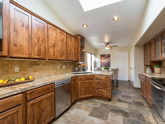 Rare find in quiet Pontatoc Canyon Estates! This is larger than the usual floor plan that was offered by builder at the time. PETE HERDER BUILT! This home offers 3 bedrooms, a game room or office, plus den. The views are dramatic from inside the home-as well as outside-of both mountains & sunsets! This lot is one of the largest in the community (almost 1/3 of acre) with common area behind... so much privacy! Inviting pool with views forever! Upgrades include: rolling shutters on some windows, granite counters, stainless appliances, wet bar, alder kitchen cabinets (with roll-outs), brand new double front door, tile throughout most of the home, new carpet, storage in garage, new hot water heater, newer HVAC systems, and roof warranty. Close to shopping & the High School. Convenient living. All appliances included with the home. Lots of natural light flow due to orientation & the many skylights.