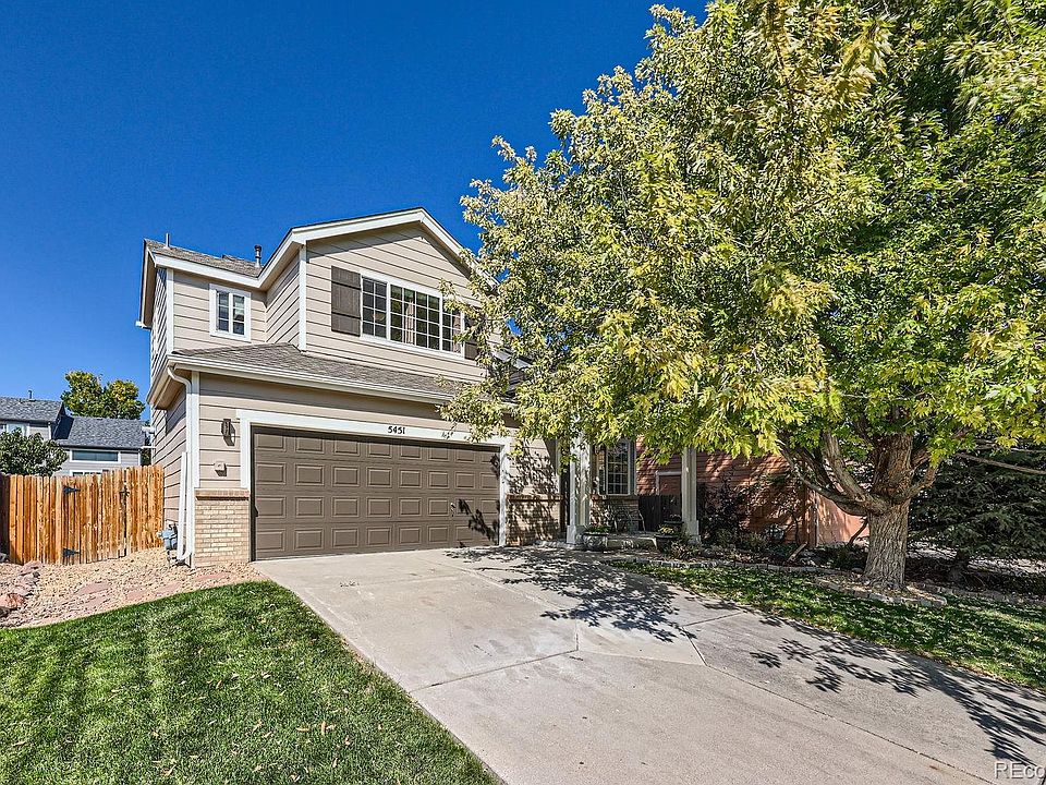 BACK ON THE MARKET, buyer could not secure financing and did not complete a home inspection. Welcome to 5451 Suffolk Ave, a beautifully updated two-story home nestled in the highly sought-after Founders Village neighborhood. This move-in-ready home features fresh interior and exterior paint, along with a brand-new roof. The inviting covered front porch leads into a bright front room with vaulted ceilings, ideal as a living or formal dining area. The cozy family room, complete with a fireplace, seamlessly flows into the dining area and kitchen. The beautiful and functional kitchen is equipped with new granite countertops and stainless steel appliances which offers walk-out access to a private patio with a pergola. The backyard is fully fenced with beautiful landscaping, ideal for outdoor gatherings and morning coffee. A half bathroom on the main floor adds to the home's convenience. Upstairs, a versatile loft awaits, perfect for a home office, playroom, or easily convertible into a third bedroom. The spacious primary bedroom serves as a retreat, complete with an updated ensuite bathroom for added comfort. Laundry is conveniently located upstairs. This home has been thoughtfully updated with new LVP flooring, carpet, and granite countertops in both the kitchen and bathrooms. The attached two-car garage provides ample parking and storage space. Take advantage of the community's outdoor pool and clubhouse included in the low HOA. Located just minutes from the vibrant Downtown Castle Rock, you'll enjoy easy access to shops, dining, and numerous parks and trails. Be sure to check out the virtual tour to experience the 3D walkthrough. Qualified buyers may also have access to discounted rate options and no lender fee refinancing in the future!
