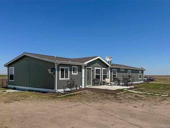 Welcome to this charming 4-bedroom, 3-bath ranch home nestled on nearly 10 acres of tranquil land in quiet Woodrow, Colorado. This picturesque property is surrounded by rolling hills, providing a serene and peaceful environment away from the hustle and bustle of the busy city. The spacious interior features vaulted ceilings flooded with natural light and a cozy living room perfect for entertaining. The modern kitchen boasts ample counter space, a center island, and a pantry and is open to the dining area. The family room is ideal for relaxation, with a fireplace centerpiece for those cool Colorado evenings. The primary bedroom includes an en-suite bathroom with dual sinks, a soaking tub, a separate shower with a seat to relax, and a large walk-in closet. There is also a private retreat in the bedroom ideal for a workout space, office, or nursery. The large bedrooms have walk-in closets and two have a shared full bath. The 3rd full bathroom and a laundry room make this truly main-floor living complete. Outside, the property is hobby farm-ready, with plenty of room for chickens, ducks, goats, and more. The expansive acreage offers endless possibilities for gardening, farming, or simply enjoying the great outdoors. The surrounding landscape of rolling hills adds to the beauty and privacy of this idyllic setting. Experience the quiet country life while still within a reasonable distance of amenities. This home is a perfect blend of comfort and rural charm, ready for you to create lasting memories.