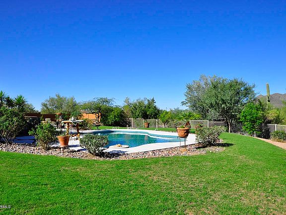 Stunning home on secluded acreage, yet close to shopping and all the conveniences of Cave Creek. Resort-like backyard w/pool and very private mountain and sunset views. Spacious open floor plan perfect for entertaining. Adjacent to hiking/equestrian trail. Pavers in circular driveway add to the elegance of this lightly used home. Freshly painted (week of 10/10/2012), this home is ready to be enjoyed by it's new owners! The additional hobby room adds great user space to this wonderful floor plan. Homes like this don't come on the market very often!