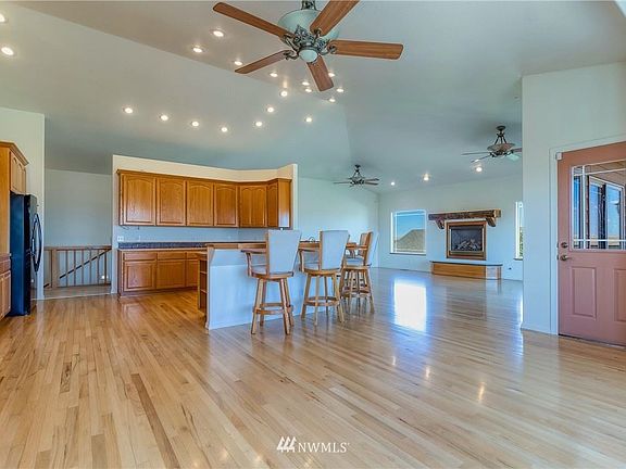The seller has loved this hilltop home it will take your breath away as you enter the grand foyer, the views are simply breathtaking. Perched upon the highest hilltop in the surrounding area, this 4 bed, 4 bath home w/ 2 kitchens, 2 fireplaces, 2 decks, 3 car attached garage, plus 6 bay shop & 10 acres, provides unobstructed mountain views from every window. On the main floor, a formal dining room, custom fireplace, breakfast area, spacious office, ensuite bath with heated floors, 2nd bedroom, & guest bath. Proceed to the walkout daylight basement where you'll again have unobstructed views of the surrounding scenery, but also a kitchen/bar, huge sitting areas, and game room, as well as another ensuite, bedroom, & spacious guest bath.