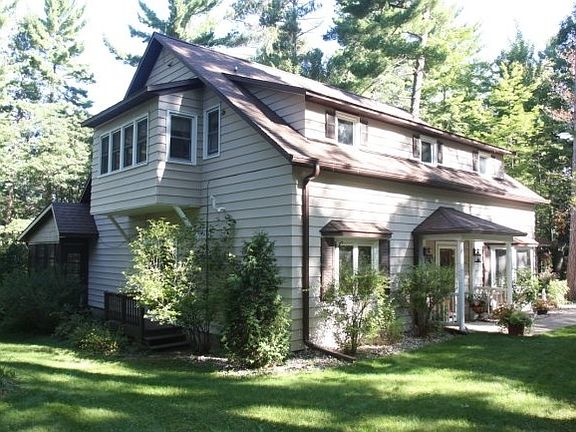 This charming Rhinelander Chain home located in a quiet and friendly neighborhood only 2 miles from town offers professionally landscaped lawns with a gradual approach to the water and westerly exposure to enjoy beautiful sunsets. There is a master bedroom suite with fireplace, walk-in closets, and newly updated baths, spacious living room with fireplace, 3 season porch offering sunscape windows, skylight and great views. This is a wonderfully warm and appealing home.