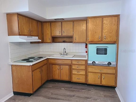 Lovely 2/1 Home with a Fenced in Yard and Bonus Room! Brand NEW Beautiful Wood Laminate Flooring Throughout the Home Big Fenced in Back Yard Ample Cabinet Space in Kitchen Bonus Room Central Air Screened in Lanai Storage Shed Large circle driveway and a Car Port