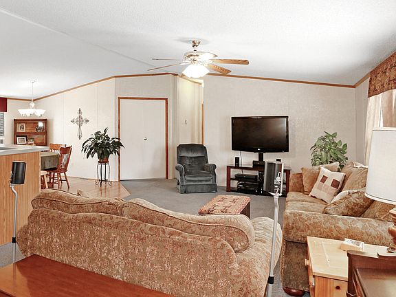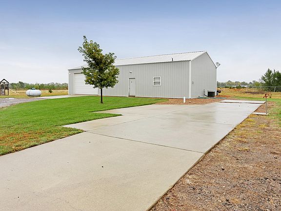 Very nice manufactured home on approximately 5 acres (courthouse says 4.98) - 4 bedrooms, 2 baths - very open floor plan. Seller has added new carpet and lots of shelving in closets and kitchen. Kitchen boasts walk-in pantry, island with pull-out shelving, eating bar plus spacious dining area. Huge master bedroom and spacious walk-in closet. Private master bathroom - separate tub and shower and double sinks. Split bedroom plan with 3 more bedrooms (4th bedroom doesn't have a closet, seller used armoire). Roof on home was put on in 2009 & have a 50-year warranty. There is a storm cellar located just a few feet from back door. Wow - 30 x 60 garage/outbuilding/workshop with 12 ft. side walls and concrete floor, overhead door & man-door. This workshop has its own HVAC system, along with a living space at one end - kitchenette, 1/2 bath & room for living room plus upstairs space for a bedroom. It has been plumbed for compressed air & 2nd story storage. There is also a 40 ft. concrete RV pad with hookups. Won't last!