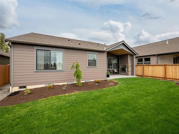 New gated community for those 55 and better - Woods Point. Includes maintained yards by HOA. Community lodge & pickleball courts are under construction now! The Laurel design includes 1,536 SF of living space w/2 bedrooms + study & 2 baths. Open great room with vaulted ceilings through the kitchen & dining areas. Home borders private community park. Beautiful solid surface counters in kitchen & bath, LVP, fireplace. Over $20,000 in upgrades are included in this charming home. Finished and insulated 2 car garage. Covered front porch, covered back patio with outdoor fireplace. Just completed!