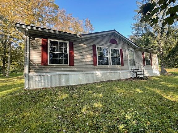 Affordable 1997 doublewide on 1.61 acres in country setting. Home features 3 bedrooms & 2 full baths. The open floor plan has a spacious living room, the dining area & kitchen. The utility room has a wahser / dryer hookup. Step out onto a large covered porch / deck. Take a few steps & enjoy the peaceful stream on the property. With two large utility sheds, you will have lots of room for your outdoor toys.