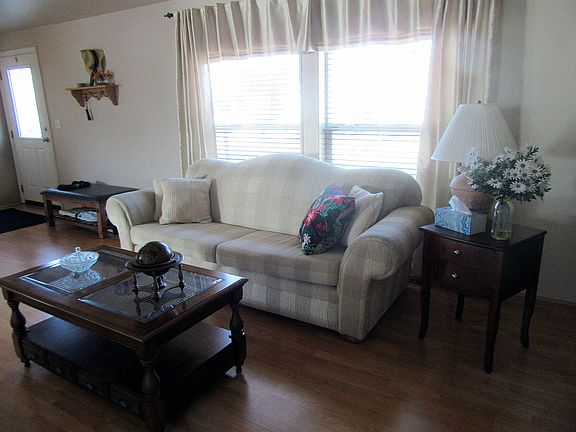 Excellent condition describes this beautiful 4 bedroom 2 bath Manufactured Home with almost 1,800 sq.ft. Split bedroom floor plan, with large master with walk in closet, master bath with double sinks and step in shower. Very open with a spacious living room, plus a family room adjacent to the dining/kitchen that has 2 eating bars, walk in pantry, center island, plus all appliances. Gas F/A heat plus A/C, built in 2000 and well insulated. Single garage with storage, side area for parking, fenced back yard, patio, nice level lot.