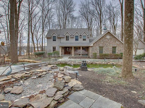 Welcome to this special property called Ledge Rock Pond. A fabulous custom home with 4 picturesque acres in Central Bucks. This home is not to be missed. Enter your estate through the private gates and you will feel at ease, as if you stepped into a vacation home. Complete with 4 bedrooms, 2 1/2 baths, 2 car attached garage, plus a 1 car detached and large carport. Some of the many wonderful features include a 1st floor owner's suite, has French doors leading you out to the back deck, as well as a walk-in closet and bathroom with soaking tub and separate shower stall with frameless shower door. This open concept floorplan is a breath of fresh air with a timeless kitchen overlooking the breakfast room and great room. Perfect for entertaining and everyday living. The kitchen offers new appliances, granite countertops, beautiful cabinets and a large kitchen island. You'll love the spacious great room with vaulted ceiling, gas fireplace and French doors leading you out to your back deck with breathtaking views. You'll also enjoy the size of the formal dining room and living room which are positioned in the front of the home. Up to the 2nd level you find a balcony overlooking the great room below, along with three generously sized bedrooms and a hall bathroom. The lower level, walk-out basement, is ideal for watching the big game, kids play space or home office. The walk out brings in the natural light adding more additional living space for the whole family. This home has been meticulously maintained throughout the years by the original owner. Outside, you will enjoy a completely redone Koi Pond with bluestone and ledge rocks, custom built, by the award winning Across the Pond Aquascapes. A large deck overlooking the private backyard with a custom covered porch. This home is truly move-in ready with recent improvements including new well pump, new hot water heater in 2016, stucco chimney redone in 2016. Plus, a whole house generator, central vac, water purification system, water softener, and all mechanicals serviced annually. So much attention to detail. One will certainly appreciate the quality of this home. Ledge Rock Pond is located in Central Bucks Schools and convenient to downtown Doylestown and major traffic routes such as 313, 611 and 202. Schedule your showing today and you will not be disappointed!!