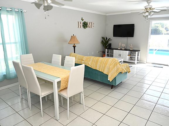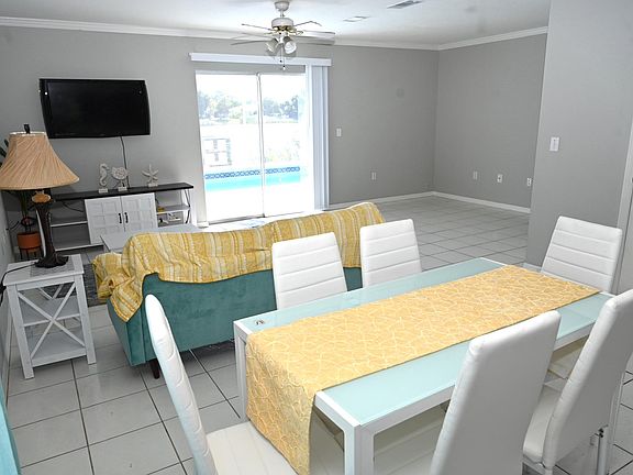Light and bright lakefront 3 bedroom home with a sparkling pool is available now! Enjoy water views and fish from your private dock. This home is partially furnished. The master bedroom is on the main floor with a large walk-in closet and laminate floors. The converted garage can be an office or man-cave, with a new wine cooler, wet bar, black tile floor and TV. Two bedrooms and a bath are upstairs. Fenced back yard, and located near Ashton Elementary and Sarasota Middle School. Pool service and pest control are included. Weekly pool and quarterly pest control are paid for by the owner. Tenant is responsible to mow the grass or pay a lawn service. Located on a lake with a dock, near Sarasota Middle School off Ashton Rd.