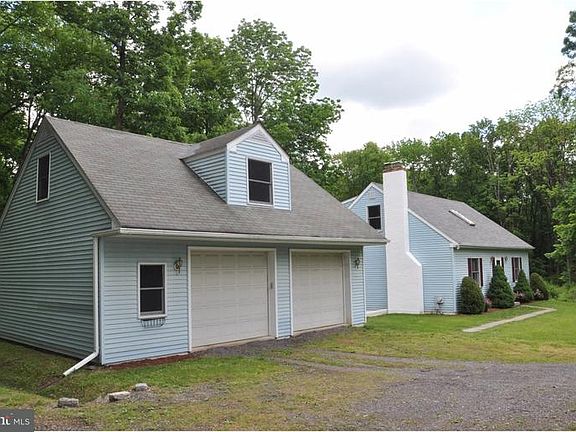 An idyllic storybook 11 acre property for enjoying your own wooded park, stream, wildlife, and this charming home surrounded by 300 acres of large parcels in the heart of Bucks County. Live comfortably in the warmth of this lovely classic, 4 bedroom cape with 2 story garage. Unseen from any road and accessed by long private driveway, this well maintained home nestles among flat lawns, and mostly wooded acres of tall trees. You enter the sunlit home through the vaulted 2 story foyer illuminated by a beautiful skylight and the entryway features a rare, valuable, oak parquet wood floor. Relax in the inviting living room accented by a stunning floor to ceiling brick fireplace with brass door wood stove insert. Dining room opens to the kitchen which features granite and butcher block counters. First floor offers 2 delightful bedrooms. Upstairs features 2 spacious bedrooms and a full bath. Energy conserving home with 3 zone heat and plenty of closet and storage space. Dry, full basement with 800 sq ft of additional space, perfect for your personal interests and hobbies. Detached 2.5 car garage features full stairs to unfinished second floor. This welcoming home is ready for you to move right in and start enjoying nature's views and seasons. This rare property has a special combination of so much valuable land, tall trees, privacy, a terrific home, highly desired Central Bucks Schools, and yet only 10 convenient minutes to Doylestown. Big Bonus: you can walk to the Herbst soccer leagues and sports complex. Showings by Appointment Only Please.