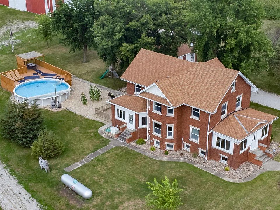 Beautiful country living with this all brick 4 bedroom, 1.5 bath home conveniently located between Flanagan and Pontiac on 3.33 acres. So much character with the gorgeous original woodwork, pocket doors, open staircase and built ins throughout the home! Main floor has an updated kitchen with all SS appliances, separate dining room with buffet and custom table that stays, Living room, stunning foyer, half bath and 2 enclosed porches with hot tub included. Choose one of two stairways to enter the second level that boasts 4 large bedrooms with large closets, some are WIC, full bathroom, and a huge amount of built in storage cabinets in the hallway. The clean basement has a room for a wonderful mancave, laundry area, shower and tanning bed. The maintenance free deck goes to beautiful landscaping and leads you to a heated pool with a pergola to enjoy the warm country days! 3 car detached garage and a 2 car detached garage with remotes, 99x66 Steel building, 79x33 Quonset. Replacement windows. Roof 2009. Whole house generator.