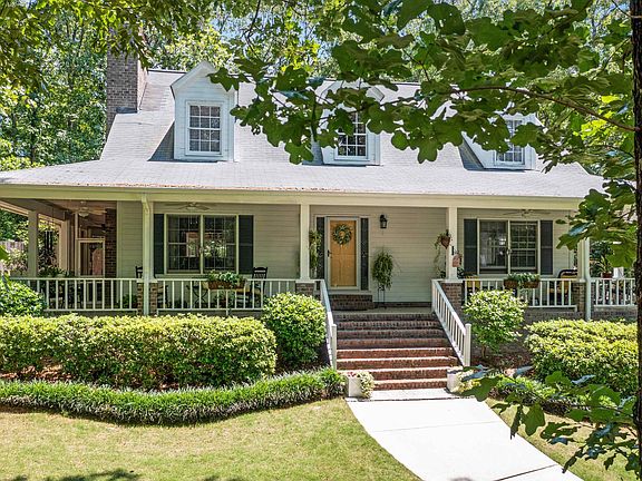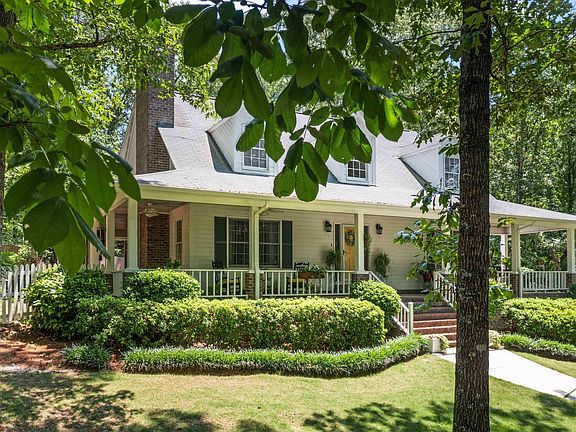 Welcome to this beautiful farmhouse style home with a large wrap around covered porch nestled on a wooded lot at the end of a cul-de-sac. The spacious front porch and a private screen patio provide plenty of space to enjoy the outdoor living. The front door leads to a two-story foyer leading to a spacious family room which features a beautiful stone fireplace. The large kitchen has been renovated with stone countertops, an island and two individual ovens gas and electric. A formal dining room for entertaining friends or guests on special occasions. Master suite on main level features master bathroom and a large walk-in closet. The laundry room is located off the kitchen which includes cabinets. The upper floor features four bedrooms, a full bath, and a half bath. The basement is unfinished which provides an opportunity for expansion. The backyard has a deck and is fenced.
