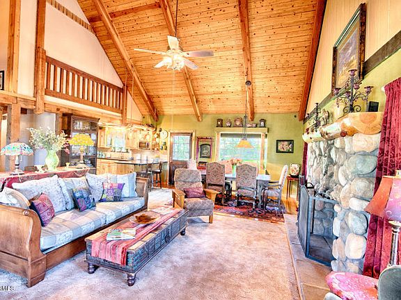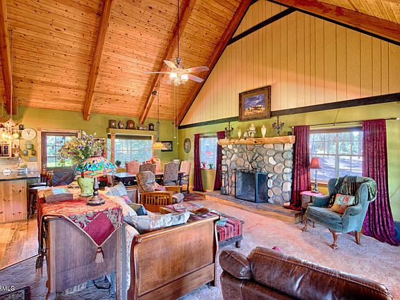 This cabin is an absolute charmer and a must see! There's a lot of love here and you will feel right at home or like you've somehow been here before. This 3 bedroom (+den) has a soaring tongue and groove ceiling and a river rock fireplace with a log mantle. The great room concept is perfect for entertaining guests or just feeling cozy with the family. The new kitchen re-model has solid wood cabinetry, stainless steel appliances and granite countertops. This home invites the forest in with unique woodsy rock accents and rustic wood planks and flooring. There is an incredible 60x30 ft commercial grade metal building complete with a loft area for storage and guest living quarters and bathroom. Natures fairies have taken special care of the landscaping featuring a mature butterfly garden!