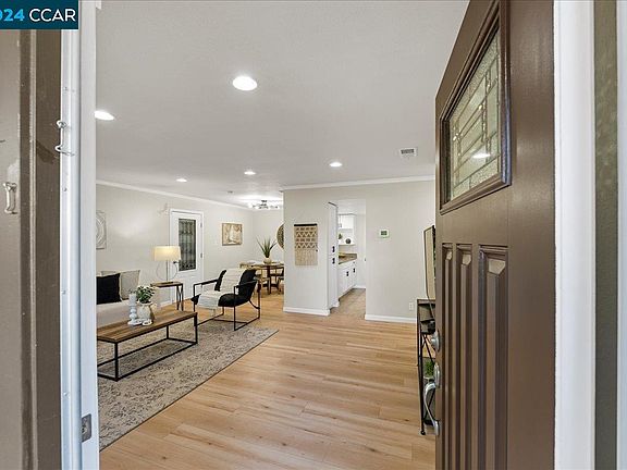Welcome home to this charming, updated, and turnkey single-story townhouse! This two bedroom end-unit offers privacy with no facing neighbors, a short walk to the large community pool, numerous beautiful renovations, such as new laminate flooring and paint throughout, and a delightful patio so you can enjoy the outdoors. This unit was completely remodeled in 2011, with permits, to include new insulation, an in-unit laundry room. and the bonus of a second entrance steps away from the assigned carport parking, mailbox, and assigned storage room. You will enjoy the spacious full bathroom, crown molding, mirrored closet doors plus tri-fold barn doors, and custom closet shelving. Roundtree is not only full of lush trees throughout but you are also close to nearby trails, restaurants, shopping, Cal State East Bay's Concord campus, Mount Diablo School District schools, and public transportation. This is a wonderful opportunity for first time buyers, housing providers to take advantage of no rental restrictions, and it is also uniquely a single-story unit available in Roundtree.