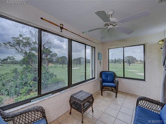 Wow, the best view in Miles Grant Country club! Views from every window of the perfectly manicured golf course. The largest unit in the most requested community in Stuart, Miles Grant Country Club. A 1460 Sq Ft, 3 bedroom, 2 bath end unit. Just steps to the Intracoastal Waterways and a spectacular view of the golf course. Watch the golfers on the greens of 14 and drive on 15 out your glassed and screened lanai. This golf and tennis club is affordable and fabulous. Huge master bedroom with a walk in closet. The second large bedroom has more storage. Third bedroom can be used as an office too. AC was installed in 2014. The end units have extra windows that are protected with two year old Accordion Hurricane Shutters. This condo is truly a hidden treasure on the Treasure Coast. The club offers golf, tennis, Bocce Ball, Shuffleboard, game night, dinning and much more! There is a day dock, fishing pier and ramp to launch your Kayak or Paddle Boards. Come see it! Where the good times begin