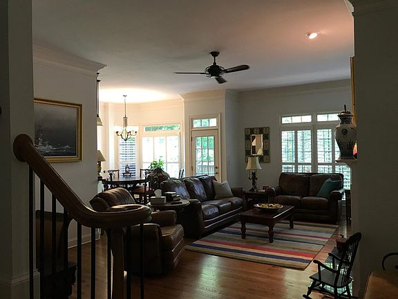 3 Bedrooms, 3 and 1/2 baths, with a kitchen, combined living and dining room, lower level is family media room, with a full bath room. 10 rooms total in the home. REAR GREEN SPACE CREATES PRIVACY. WALK IN ENTRY W/ NO STAIRS. 10FT CEILINGS, CROWN MOLDING,HARDWOODS, AND PLANTATION SHUTTERS THROUGHOUT. HUGE MASTER WITH WALK-IN CLOSET. LARGE MEDIA ROOM ON TERRACE LEVEL WITH FULL BATH AND OUTDOOR COVERD PATIO. GOURMET GRANITE KITCHEN, FIREPLACE, LAUNDRY ROOM, AND ATTACHED 2 CAR GARAGE WITH BUILT IN RACK STORAGE.