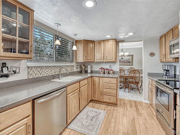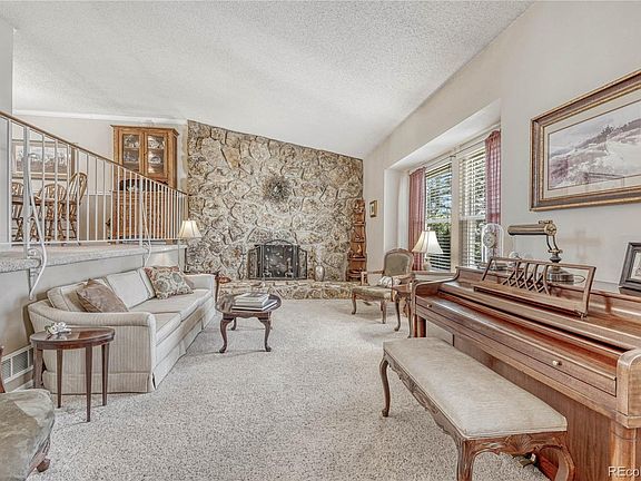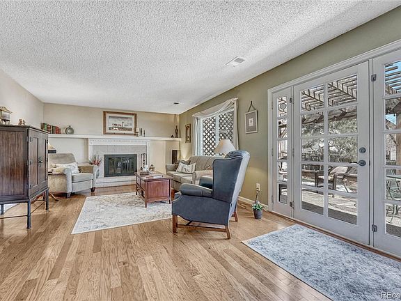 This is the golden gem of Centennial. Cherry Creek Schools. Beautifully maintained neighborhood with affordable Home Owners Association fees. Community pool. Pickleball, tennis and basketball courts. Parks that have mature landscaping, walkable paths, playground equipment and tables for picnics. Walk to The Trails Recreation Center. One of the most desirable floorplans in Smoky Hill. Custom brick walkway and patio welcome you into this lovely home! Enter into the large formal living room with wood burning stone fireplace that stretches to the vaulted ceiling. The family room with French doors to patio, has a second wood burning fireplace... so cozy on cold winter days. The entertainers bar area has a sink and is perfect for those holiday parties. The main floor has a remodeled half bath and a large separate laundry room with doggy door. You will love the REAL hardwood floors in the beautifully remodeled kitchen. An entertainers delight with Silestone countertops and maple cabinets. Frigidaire Gallery stainless appliances are all included. The large adjacent formal dining room is beautifully appointed with crown moulding and perfect for your dinner parties. Next level up are three large bedrooms. The primary bedroom is quite large with extra space for a sitting area and has a generous walkin closet. The 3/4 bath en suite is remodeled with granite counters, a lovely tiled shower and flooring. The other two bedrooms share a full bath with double sinks and granite counter. This full bath has a separate stool shower combo. The garden level basement is completely finished with a closet and makes a perfect game/tv room. There is a 5 1/2 ft. tall crawl space/ mechanical area that is perfect for extra storage. New roof and newer Pella windows. Gutters 2023 and vinyl siding 2018. The hot water heater was replaced 2022. The extra wide garage has finished walls and an insulated door. There is room for a storage/ work bench. Perfect home in a very desirable area!
