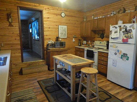 Great house or camp.... 5 bedrooms, 2 bathrooms on 11.82 Acres mostly wooded. Watch the wildlife right in the back yard! Like fishing or kayaking? Days river is just up the road and Rapid River is only 5 miles away. Heat is pellet stove in living room and propane in back half. Large Chicken coop with fence on property. Detached garage which is set up for a wood stove. The home is single story but does have different "levels" and some stairs throughout. Very spacious and many updates have been made. You will love the woodwork and openness. Also with school of choice there are 3 different school districts that currently have busing down this road. Part manufactured 1980 with addition in 1990s