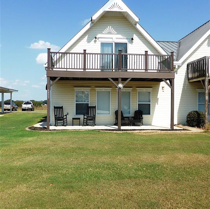 Surprisingly beautiful updates to this home. New engineered flooring thru out, easy to decorate neutral gray walls, decorative gray subway tiles as back splash in kitchen, black granite counter tops w/ coordinating island. 3 closets in Master w/ 3x5 show stopper tiled shower. Extra storage under stairs and hallway. Upstairs features rec rm or huge bedrm w/ walk in closet plus 1/2 bath. Deck up finished in trec board and covered patio down ready for your your favorite swing. Easy walk to marina. Lots of extras not mentioned. Enjoy river life
