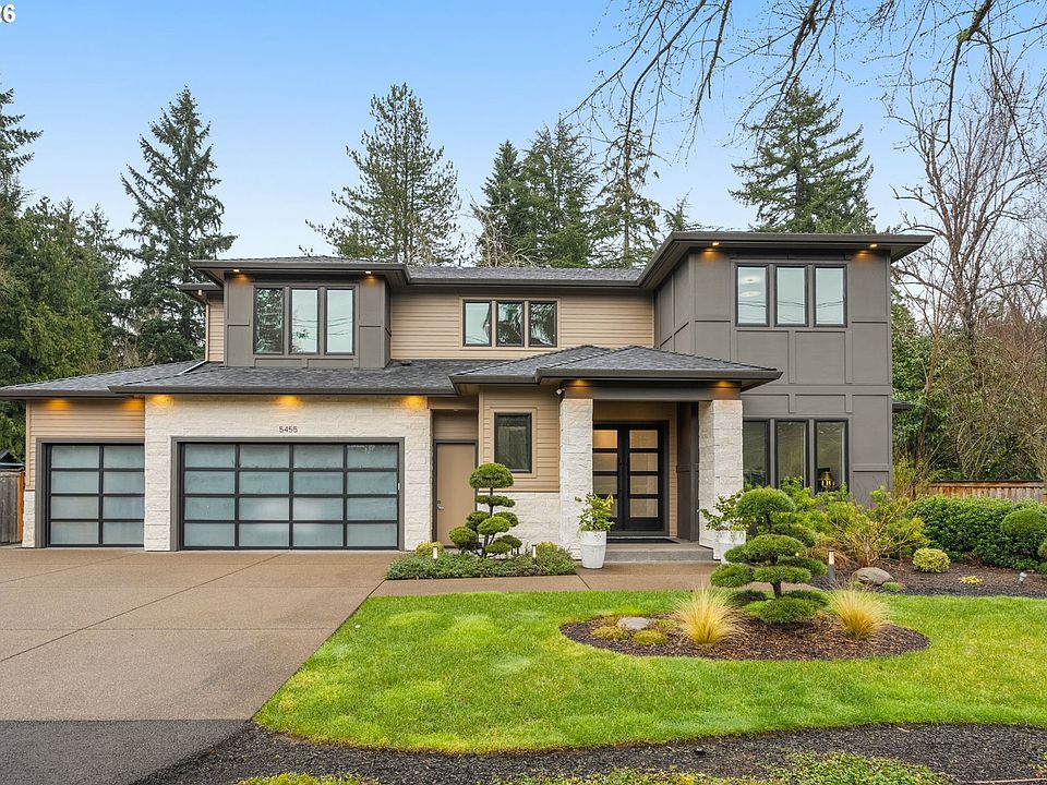 This Lake Oswego custom home blends refined design with modern livability. Soaring ceilings and expansive windows fill the main level with natural light that highlights the inspiring great room framed by windows and centered by a quartz-clad fireplace and walnut hardwood built-ins. This space flows seamlessly to the dining area and an inspired kitchen featuring quartz surfaces, oversized island with seating, a full suite of Dacor stainless appliances, and generous walk-in pantry. A stacking slider extends the living space to a covered outdoor area with fireplace and infrared ceiling heater, creating a natural connection for year-round indoor-outdoor living. The thoughtfully designed floor plan includes a main-level primary suite offering a peaceful retreat with luxurious bath and soaking tub, while an additional upper-level suite and provides flexibility for family and guests. The main floor also features a private office and a spacious, well-designed laundry room. Set on a beautifully landscaped .34-acre lot with a storage shed, the property offers a rare combination of privacy and ample guest parking. Located close to neighborhood green spaces and just minutes from downtown Lake Oswego and Lake Grove dining and amenities, award-winning schools, the new Lake Oswego Recreation Center, Bridgeport Village, and I-5. Plans by Rick White of The Whitehouse Collection, complemented by the interior design of Ronda Divers, reflect careful attention to proportion, detail, and material selection, creating a home defined by quiet elegance, timeless design, and enduring architectural appeal.