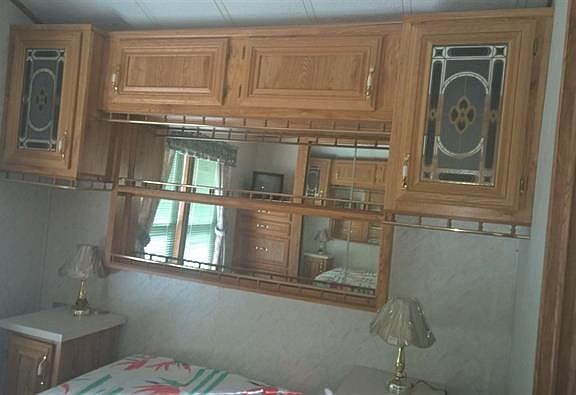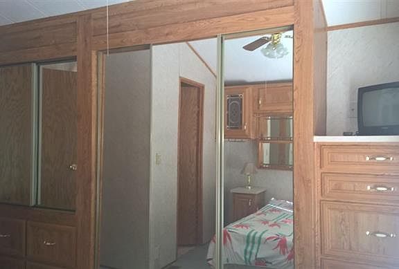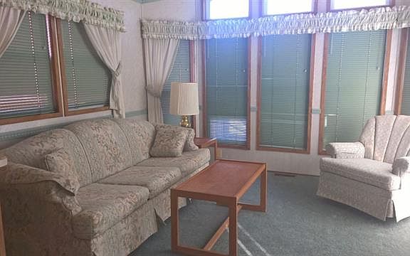 REDUCED! Can't beat this price for a lake getaway! Lovely 38' Breckenridge Mobile home located on Lot 50 (Rented Lot) in the Ponderosa Campground. Beautiful Oak cabinetry and trim interior. One large bedroom with lots of closets, storage and built in furniture. Living room has a queen size sofa sleeper for extra company. All furniture and kitchen supplies will stay. It is Move in Ready to enjoy your summer vacation time. The lot has lakefront and view that is lovely from the wrap around deck for entertaining. Garden area on lakeside. The lot also is across from the Lagoon on the Roadside. This location is one of the best in the Campground and in a very quiet area.