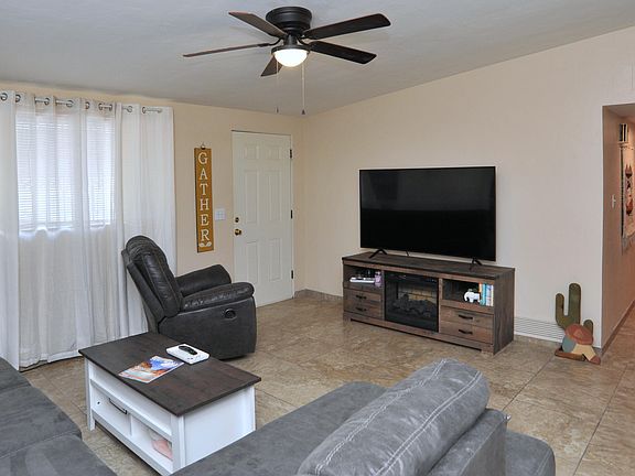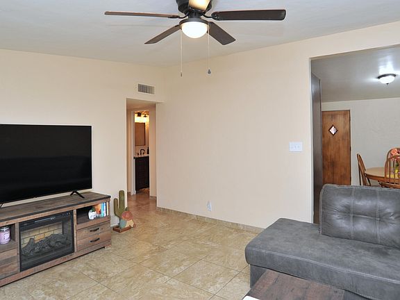 Fantastic location, amazing mountain views, and tastefully remodeled! Charming brick ranch style home centrally located in the heart of Tucson, convenient to everything. Boasts an eat in kitchen with all new wood kitchen cabinets, sink, faucet, dishwasher, refrigerator and gorgeous granite countertops. New bathrooms with travertine shower tile, new vanities, faucets, and light fixtures. Large living room off the kitchen to host gatherings in the spacious open floor plan w/pitched ceiling. Whole house plumbed with new pex & copper, new 200amp electric, newer mop roof, ceiling fans and ceramic tile throughout w/ newer carpet in bedrooms. An oversized primary suite offers a private bathroom w/custom spacious walk-in shower and sliding glass door to access the covered patio & laundry room.