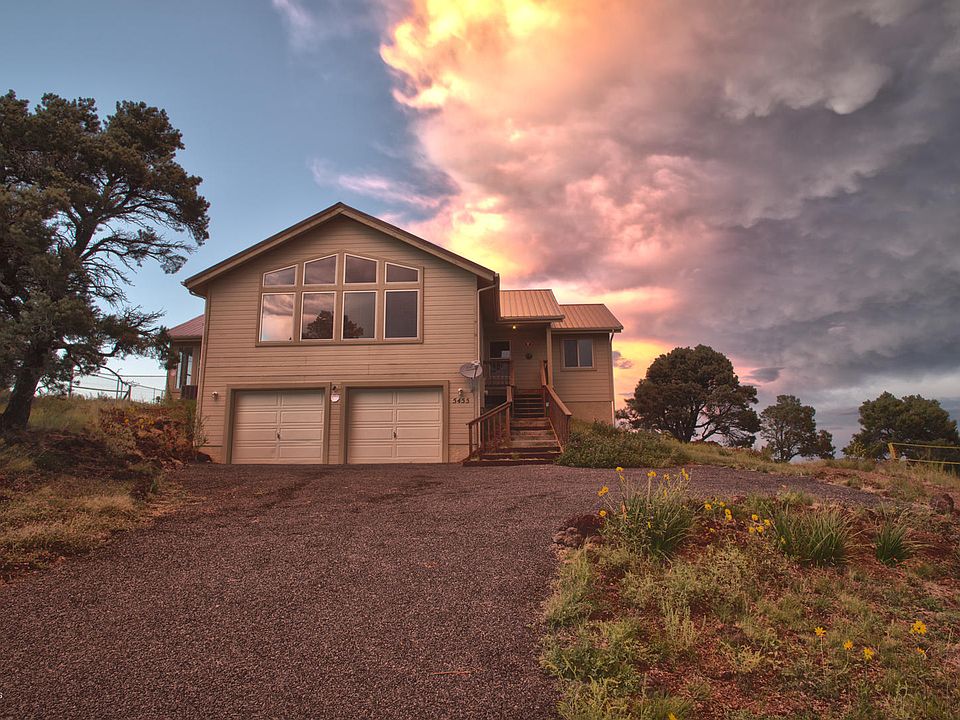 MOTIVATED SELLERS! Spectacular panoramic views of the San Francisco Peaks, Mt. Elden and the Cinder Hills are a must see! Truly breathtaking! The custom-built cabinetry and details are unique highlights in this versatile home with room for everyone! This gem sits on 1.29 acres includes two master suites, a great room with walnut flooring and a downstairs family/media room that has sink/cabinetry and could easily become a full mother in law suite. Eat-in kitchen has updated quartz counters, beautiful wood cabinets, and a walk-in custom pantry. Plenty of storage throughout. Quiet, pleasant neighborhood walking distance to National Forest hiking and ATV trails. Newer driveway, roof and A/C/furnace. Attached garage with additional parking in back. Enjoy everything Flagstaff has to offer!