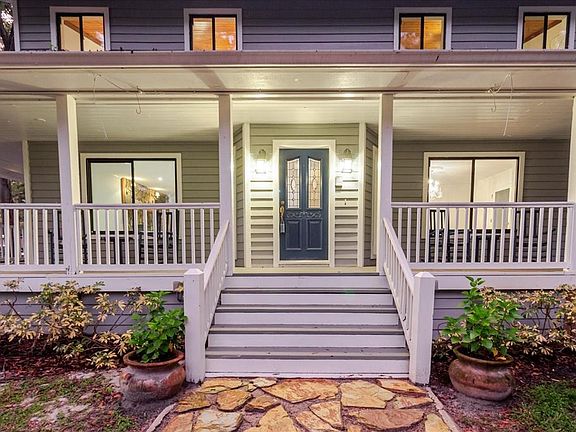 One or more photo(s) has been virtually staged. Enjoy 3.16 acres of no-HOA, no-CDD, freedom with this modern farmhouse featuring 4,563 sq. ft. (main house Under roof) and nearly 3540 sq. ft. of Garage/workshop areas. Highlights include a wrap-around porch, brand-new roof, three new AC units, and two primary suites one on each level plus two oversized bedrooms and a renovated bath. The massive block Garage building offers an 840 sq ft of climate-controlled storage, an office space and or Gym, an upstairs 840 sq ft studio with full bath and wet bar, ideal for guests or an in-law suite, and an RV/boat/car lift space. A third block detached building workshop adds even more possibilities. All of this sits on roughly two-thirds of the property, with a separately fenced 1-acre section ideal for horses, a barn, gardens, or additional storage. Located just minutes from shopping and dining, yet offering the peaceful privacy of country living. The property is fully fenced and gated. all just minutes from shopping and dining yet surrounded by peaceful privacy.