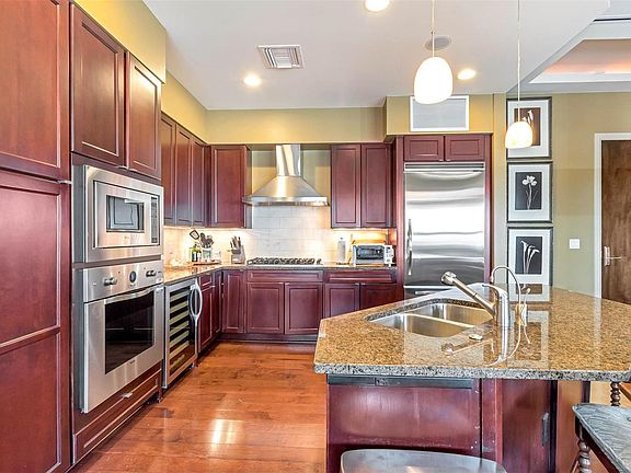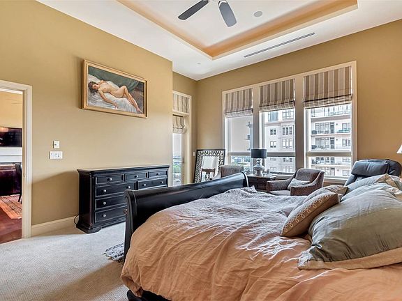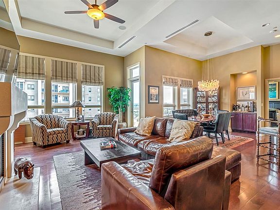 Stunning east facing penthouse at The Landmark with 13' high ceilings, large windows and open floor plan with beautiful south & east facing views. This exquisite home features all of the upgrades such as custom lighting and blinds, two balconies, gas fireplace, coffered ceilings with crown molding, custom closet built ins and beautiful hardwood floors. In addition, this gorgeous unit features a gourmet kitchen with granite counters and Viking appliances.