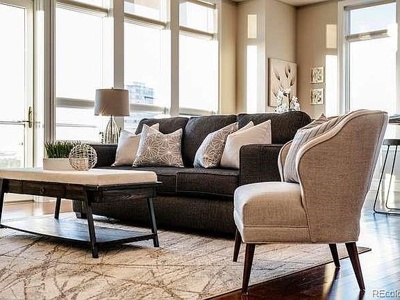 This comfortable corner unit, located in the west tower with views of both Mountains and Downtown Denver, is light and bright. The beautiful two bedroom, two bath home has a great open concept living space including kitchen and dining with large windows on two sides. The master suite, which can easily accommodate a king-size bed and side tables, has an en-suite 3/4 bath and walk-in closet. The second bedroom is generously sized and also works well as an office with a full bath nearby. The unit comes with 2 assigned parking spaces and 1 storage unit. The Landmark offers stunning amenities including front desk and concierge service, fitness centers, pools, hot tubs, wine rooms, library, craft room, theater room and guest suites. There is a beautiful terrace on the 4th floor with ample seating for entertaining and infinity hot tub. Residents may use the amenities of both buildings. Enjoy all the retail offerings such as restaurants, shops and movie theater right outside the front door.