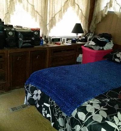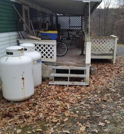 Sold to settle an estate. 1975 mobile home on a foundation. Driveway on both sides of home. Large porch. Home in average condition - with sizeable living room (with a bump out), dining area, 2 bedrooms and full bath.