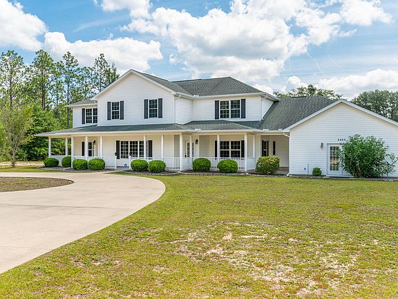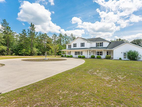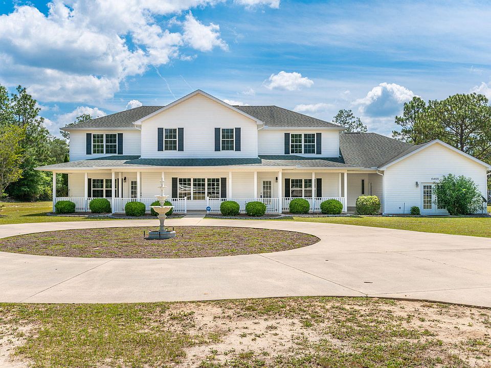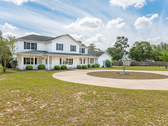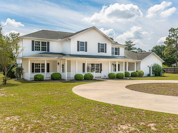 NEW ROOF ANDRECENTLY RENOVATED w/ new flooring, fresh paint, new lighting! Don't miss this sprawling 5 bd/4.5 ba estate w/ over 5,100 sq ft (heated/cooled) and situated on 2+ acres. Greeted by a circular driveway leading up to the large front porch, step inside the home to the inviting and spacious living room and semi open floor plan. The kitchen boasts solid cabinets, breakfast bar and pantry. Two oversized master suites are located on the first floor and 3 add'l oversized bedrooms are located upstairs. An additional room upstairs could be used as a 6th bedroom although there is no closet. A separate front entrance to the home leads into what has been used as both a workshop and large office space, but has endless possibilities...has a bathroom and would make a great Mother-In-Law suite The home has an upstairs storage area and a carport w/ rear access off of Pinderosa Lane. Many possibilities with this large home. Easy access to both Crestview, DFS and via 285 to Niceville and military bases! Schedule your showing today! Buyer to verify all areas of importance!