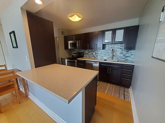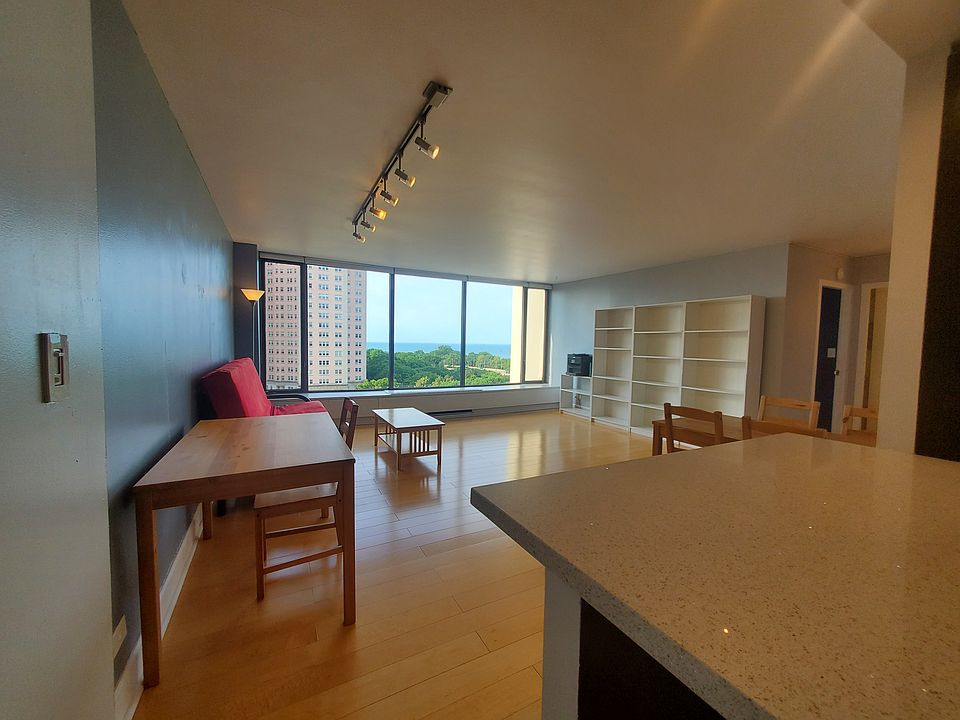 Furnished or unfurnished, spacious & renovated unit with lake-views, wood floors, and quartz countertops. Move-in ready. Perfect for a professional who needs to relocate to Chicago for work on short notice. This unit isn't going to last: schedule your showing before it's gone. Unit: Large floor-to-ceiling windows in both rooms offer a beautiful and very private view of the lakefront. Kitchen has LG appliances, plenty of cabinet space, and a large island overlooking the expansive living room (open-floor concept). Three extra large closets. Both rooms are wired for cable. Washer and dryer in the building. Amenities: Outdoor pool, grilling stations, children playground, indoor parking, indoor and outdoor bike racks (1 place for 1 bike in the indoor bike room is included in the monthly rent), roof-top party room with a breathtaking view of downtown Chicago and lake Michigan. Location: Mariano's is an easy 5-minute walk, Jewel and CVS are also nearby. Lincoln Park and the Chicago Lakefront Trail (an 18.5 mile-long pedestrian and bike path) are at your doorstep. Walk to Foster Beach (with its beach house and volley courts) or Osterman Beach. Minutes to the Red line. Bus lines 136, 151, and 147 (express to downtown) stop at the front entrance. Furnishing and Accessories: Bedroom has a queen-size bed, a desk and a dresser. The living room has a comfortable sofa bed, a dining set, three bookcases, and a desk (ideal for work for home arrangements). We provide plenty of home and kitchen utensils and appliances perfect for a home cook including pots, plates, glasses, mugs, coffee maker, food processor, KitchenAid Mixer, Instant Pot, rice cooker, Dutch oven, iron, ironing board, vacuum. Kitchen, bed, and bathroom linens are also provided. Security Deposit: None Utilities Included: Internet & cable TV, hot water, AC and heating, 1 bike spot in indoor bike room. Utilities Excluded: Electricity (expect $30 to $40 per month). Pets: small dogs and cats permitted