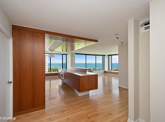Get a shoreline seat to the beauty of Lake Michigan! This exquisite 2 bed/2 bath unit was designed by the award winning architect owner who created this custom home to take advantage of its unique sense of place on the Chicago lakefront. This highly desirable northeast corner unit offers panoramic lake and park views that can be seen from the moment you enter. The custom teak wood kitchen boasts a floating island, Caesarstone quartz counters, and top of the line GE Monogram appliances. High-end finishes continue into the custom designed master bathroom including heated floors and spacious walk in shower with two premium shower heads. Full amenity building features a roof top sundeck, in-ground swimming pool, dog run, 24-hr doorman & on-site maintenance, etc. Steps to Foster Beach & Hollywood Beach, Starbucks, Red Line CTA, Mariano's Grocer and much more! Valet/rental parking available.