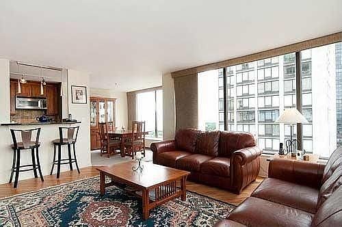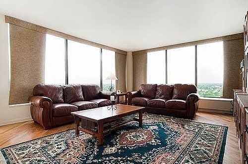 Enjoy expansive city views & some lake from this GORGEOUS high floor unit. SUNNY SW corner unit. Beautifully remodeled w/ oak hdwd floors, granite c-tops, cherry kitchen w/ high-end fixtures & high end SS apps. Granite breakfast bar opens to the large LR. Bath has custom vanity & designer tile. TONS of closet space & generous room sizes. Bldg has pool, 24 doorstaff, rental pkn, laundry, roof deck & storage. FHA OK.