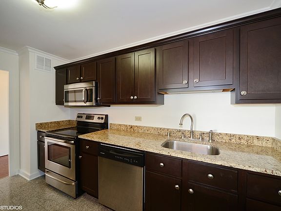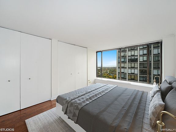 Wonderful Opportunity for a South Exposure with Views of the Lake, Park, Pool, and West City Landscapes! The Condo has been rehabbed and freshly painted. Contemporary Espresso Cabinet Kitchen with Stainless Appliances including Dishwasher, Abundant Granite Counter Space and Huge Breakfast Bar that opens to the Combo Living and Dining Areas. Excellent Storage Space in the Condo with Two Full Walls of Closets and a Walk-In Closet. Remodeled Neutral Ceramic Tile Bath with Espresso Vanity Cabinet and Linen Closet. Desirable Building with 24 Hour Door Person, On-Site Manager, Engineer, Party Room, Pool,Roof Deck, Cabana Rentals, Cleaners & Receiving Room, Library, Remodeled laundry room on site, Dog Run, EZ Park Access and Rental Heated Garage Parking additional.