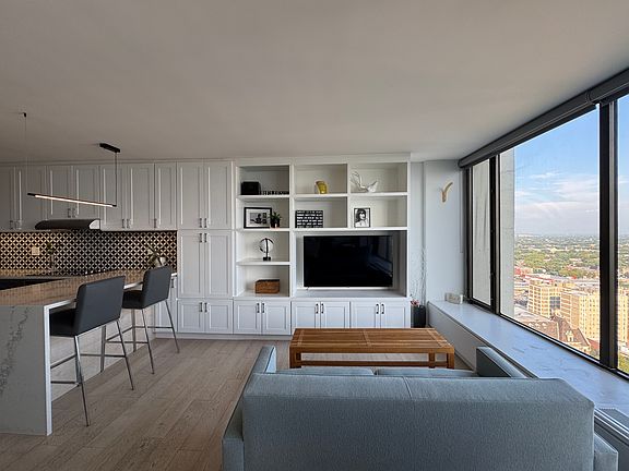Stunning Lake Michigan Views! Renovated 32nd-floor studio with modern finishes, wood floors, and new appliances. Ample in unit storage with custom "Closets by Design." Fully renovated bathroom with glass walk-in shower. Building offers parking and pool (add'l cost). Immediate access to park, beach, Lake Shore Drive, Red Line and Express Buses. Pet-friendly unit (max 2, $25/pet/month). Option to rent fully furnished (+$50/month). Owner pays for water, cable, and internet. Renter pays electric.