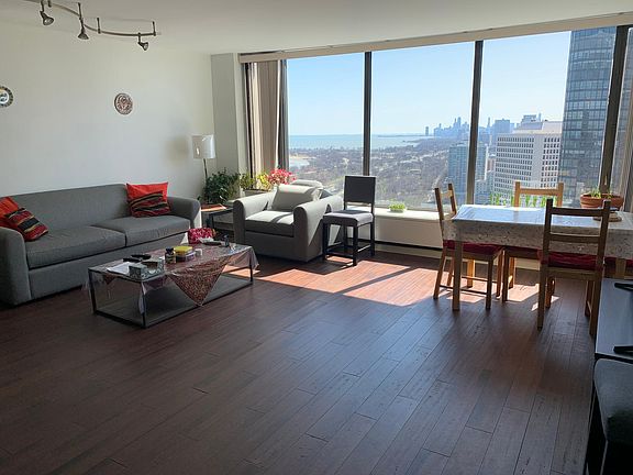 You'll love the fantastic lake and city views from this 37th floor one bedroom condo. This freshly painted, pet friendly condo features an abundance of natural light, ample closet space, and raised panel cabinetry, new handscraped engineered bamboo flooring. Building amenities include 24 hour door staff, an outdoor pool, gated bike path access, a rooftop sundeck, two party rooms, library, bike room, an on-site manager, dry cleaners and a parking valet available. Nearby amenities include the Sheridan Road bus line, nearby to the Red Line, bike path and park. The rent includes heat, water, internet and cable.