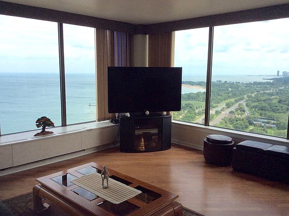 No Season (or day) is without spectacular visual changes....Watch the Fireworks from Navy Pier or the Planes fly by for the Chicago Air Show!! You can graciously live with your Million Dollar View $$$ for a fraction of the price in this updated and spacious 2 Bedroom, 2 Bath Home. Newer hardwood floors laid diagonally reflect elegance, as do the many mirrored doors and dining room wall. Kitchen features lt cherry cabinetry topped by granite, with upscale vinyl tile floors in both Kitchen, Dining Room, and Foyer for carefree maintenance. Both Baths updated with wood cabinetry and granite. NEED MORE SPACE IN FUTURE?? ADDITIONAL ROOM(s) POSSIBLE FOR EXPANSION!!!! Happy to work with "Buyers' Agent" - Call for Appt. 5455 is one of the most desirable buildings on Sheridan Road with Excellent Mgmt and featuring many, many Amenities like: * 24 Hr Doorman * On Site Mgmt Mon - Fri * Indoor Parking Available - CTA at Front Door * Dogs and Cats Allowed - No Wt Restrictions * Outdoor Swimming Pool & Grills * Sundeck * 2 Party Rooms * Access to Outdoor Tennis and Indoor Pool nearby * Heat and A/C Included in Assessment * Internet & Cable TV with TiVo included with MA * All Utilities except Electric (at very low cost) Included * Receiving Room with Dry Cleaners * Library and Computer Room......and more Room sizes are spacious and Master BR now accommodates King Bed, 2 Full Size Dressers, Large Credenza, and Lingerie Chest.
