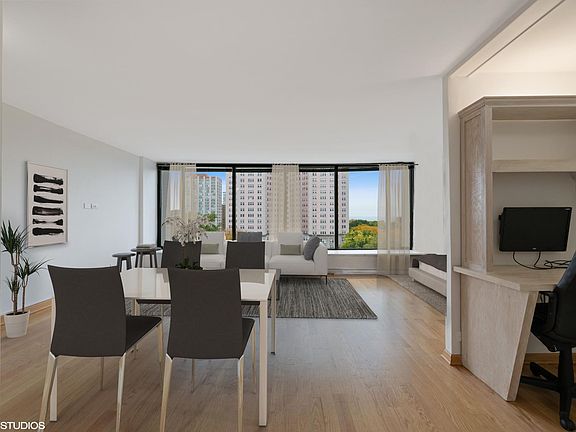 Unbelievable LAKE, PARK & GARDEN VIEWS through FLOOR TO CEILING WINDOWS. HARDWOOD FLOORS, built-in workstation, huge closets, freshly painted & BRAND NEW STAINLESS APPLIANCES. Fantastic, PET FRIENDLY, SOLID BUILDING offers on-site management, 24 hour DOOR STAFF, stunning ROOF DECK, 2 hospitality rooms, DOG RUN, dry cleaners, receiving room, gated ACCESS to BIKE PATH, PARK & LAKE and a FABULOUS OUTDOOR POOL with CABANAS & GRILLING AREA. HEAT, A/C, INTERNET & CABLE TV INCLUDED IN RENT! Indoor, heated valet parking available at $175/month. Pets will be welcomed on a case by case basis. $350 landlord nonrefundable move-in fee in lieu of security deposit plus standard building move-in fees.