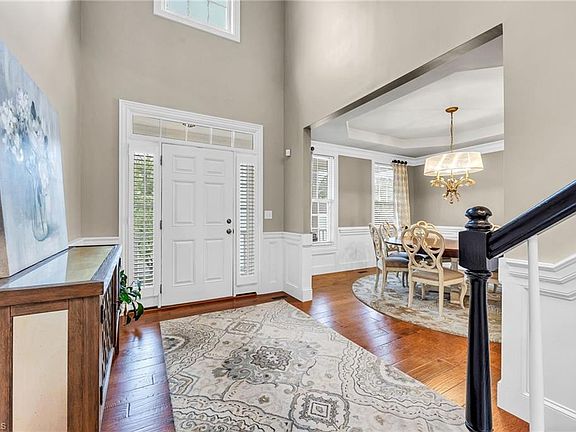 Back on market due to financing. Welcome to this stunning, elegant home where sophistication meets comfort. As you enter, you'll be greeted by a grand foyer with soaring 19-foot ceilings, seamlessly flowing into a spacious great room drenched in natural light. The gleaming hardwood floors and custom moldings throughout, including wainscoting and two-piece crown, set the stage for the luxurious finishes you'll find in every corner. The sunroom features a coffered ceiling, perfect for relaxing or entertaining, while the bonus room offers a convenient pocket office—ideal for working from home. The home boasts four sizable bedrooms, including a primary suite with a tray ceiling, creating a serene retreat. The dining room also features an elegant tray ceiling, adding to the charm and sophistication of the space. Step outside to the lush, fully fenced backyard, a private oasis perfect for outdoor gatherings or quiet moments. With too many custom features to list, it's a true gem.