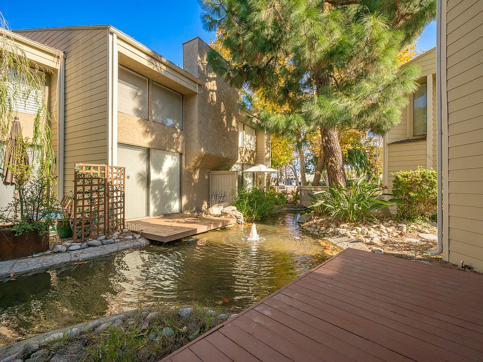 A lovely 2 bed home with Large Windows and lots of Natural Lighting throughout. Patio that overlooks a calming and serene stream. Property will be freshly repainted and updated with brand new carpet upstairs before move-in. Rent includes: 1 Primary Bedroom with Connected Vanity and 2nd bedroom. Toilet, Shower, Vanity Sink, and Cabinetry Space 2 Car Garage Kitchen, Living Room, 1/2 Bathroom downstairs Access to Patio Overlooking Stream Access to Housing Complex Common Spaces (Pool, Spa, Complex BBQ) Home includes: Central A/C In-Unit Washer/Dryer Dishwasher Gas Stove Large Fridge Renter pays: Electricity Gas Internet Pets - additional $100/month 12 month lease. Renters responsible for Electric and Gas utilities. Water and trash included. No smoking inside the unit.