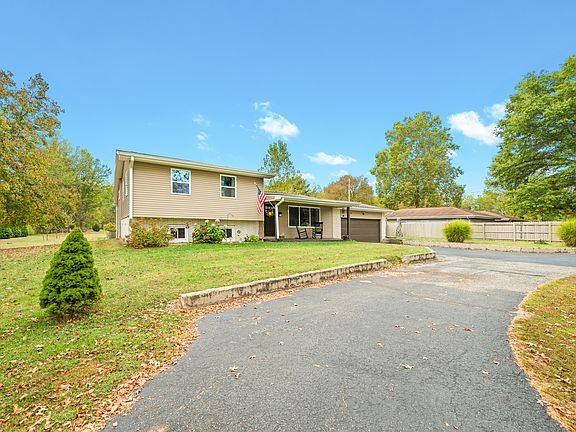 Welcome home to your perfect homestead! This has everything you've been dreaming of with 4.55 acres, attached 2 car garage, new large pole barn with utilities, a pond, and views front and back that capture you with trees, fields and nature! Have a seat in a rocking chair on the covered front porch perfect for a relaxing sunset. Then come on in to hardwood floors, updated kitchen and full bath. The lower level has 2 large family rooms! Plus a storage/workshop area. Upstairs you'll find 3 lovely hardwood floor bedrooms. A large double vanity updated bath. And a primary bedroom that opens to a really nice loft that can be used as office and/or workout space. The basement walks out to a fenced in yard and spacious patio. The large newer pole barn has garage doors in front and back so you can pull straight thru. Plus it has concrete floors and electricity. Just beyond is a scenic little pond in a clearing. Beyond that is so much woods for you to explore and enjoy! All this still convenient to town, shopping, and dining! Come get swept away by this charmer today!!!