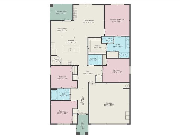 Welcome to this beautifully maintained 4-bedroom, 2-bath home offering more than 1,800 square feet of comfortable living space on a spacious 0.30-acre lot. Designed with both function and style in mind, the home features an open layout that connects the living room, dining area, and kitchen--perfect for relaxed family living or entertaining guests. The kitchen stands out with its bright cabinetry, large center island, and convenient breakfast bar, creating a natural gathering spot. The split-bedroom design ensures privacy, while each room offers plenty of space and comfort. Outdoors, enjoy a covered patio that overlooks a fully fenced yard with mature trees, providing both shade and tranquility. With its balance of indoor comfort and outdoor charm. Property is located at the end of a dead end street providing limited through traffic as well as nearby schools.