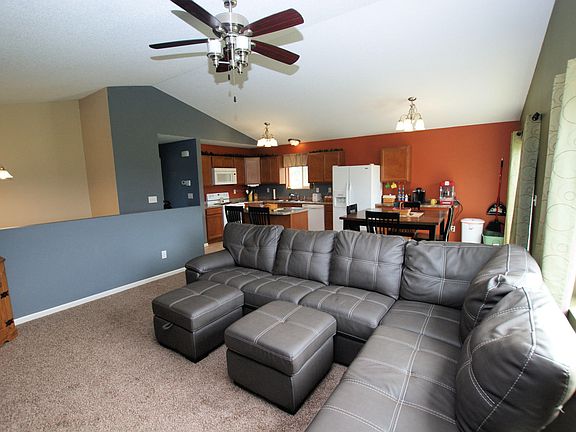 4BR 2BA home in a fantastic neighborhood. Just west of town. Imagine grilling on the amazing deck with the kids playing in the yard. After supper you all congregate around the campfire to roast marshmallows and watch the sun go down. Extra countertop extending the Kitchen is the perfect coffee bar setup. Open concept with Kitchen Island and vaulted ceiling. Double attached heated garage with extra cement slab to the west perfect for parking the boat trailer.