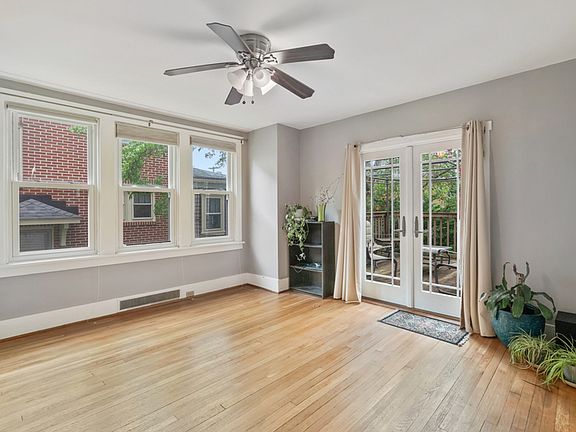 French doors open to private rear deck off dining room with a beautiful backyard for relaxing or entertaining.
